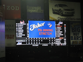 Wednesday, I could hardly contain my excitement at work. When I left the office for lunch, I was irritated at the fact that it was raining yet AGAIN (I think they said something like it has rained 19 out of the last 24 days...ridiculous!) because we had tickets to the Mets vs. Cardinals game for that night!